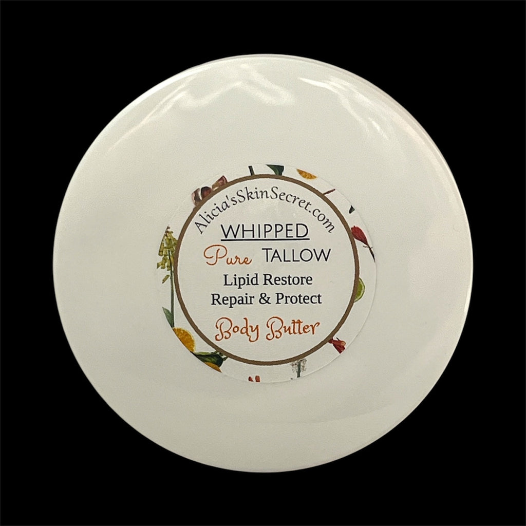 Whipped Tallow made with pure ingredients derived from a small grass fed farm using suet. Suet Is the superior fat. Silky cream texture will help to soothe the skin, calm down inflammation and prevent dehydrated skin. Due to its similar lipid profile to the skin's natural oils, it can effectively repair the lipids while hydrating and softening the skin. Rich in Vitamins A, D, E, K, B and Lipids. Providing superior skin care benefits and optimal skin vitality. Gentle on the skin for any skin care type. This is nature's perfect skin care product. Tallow has been used as a healing skin care product since the beginning of time, by our very own ancestors. There is evidence suggesting it may help regulate sebum production and reduce excess oil flow.